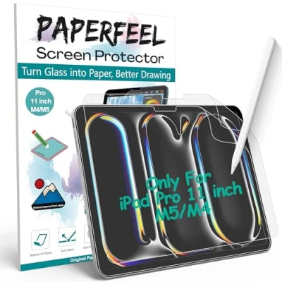 Compatibility: Exclusively designed for iPad Pro 11 inch M5 2025 Model and iPad Pro 11 inch M4 2024 Model. The compatible models are A3357, A3358, A3359, A2836, A2837, and A3006. NOTE: This screen protector might influence the clarity of the screen. Please think twice before purchasing Premium Material from Japan: Paperfeel, Matte Surface, Anti-fingerprint, Anti-glare, Case-friendly, Bubble-free, Easy Installation. Paperfeel Screen Protector for iPad Pro 11 inch M5 M4 2024 2025: Due to the glass of the tablet slides easily and inaccurately, which brings frustration when trying to take notes and draw details of art, especially straight lines. Now Paperfeel surface creates the feel and resistance of paper to your tablet for drawing or writing. 0.17 mm Ultra-thin & Case-friendly: With rounded edges. High-response and high transparency. Precise cutout won't affect your Face ID authorization. No effect for you to use a case to protect your tablet. Package Includes: 2*Paperfeel screen protector for iPad Pro 11 inch M5 M4, along with cleaning kits and detailed instructions for easy installation. Fit iPad Models: