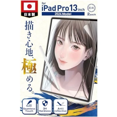 [COMPATIBILITY] iPad Pro13 inch 2024 7th latest release. It’s compatible with the Apple Pencil and other active stylus pens. 【Ultimate Drawing Experience】Enhancing the friction resistance of the film beyond that of fine paper, we aim to improve the drawing experience while pursuing the sensation of drawing on paper. It offers a paper feel drawing feel. Paperfeel screen protector 【Comfort in Ultra-Thin Design】The PET layer of the film is ultra-thin, measuring only 0.125 micrometers in thickness. This design minimizes any decrease in stylus pressure sensitivity or touch responsiveness, ensuring compatibility with both the 1st and 2nd generation of Apple Pencil. 【No Blue Light Filter】Our film does not have a blue light cutting feature. However, it boasts an industry-leading light transmittance rate, ensuring accurate and vibrant representation of colors in illustrations. 【Anti-Reflective ( Anti-Glare ) Coating】With a matte finish, our film prevents glare caused by light, maintaining the visibility and clarity of your iPad's screen.