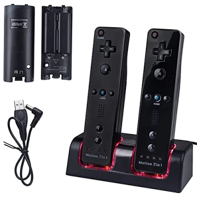 2 Pack Rechargeable Battery for Wii Remote Controller, TechKen x 2800mAh Batteries with Charging Station Dock (Black)