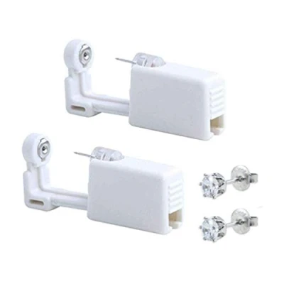 2 Pack Self Ear Piercing Gun Earring Disposable Stud Kit Sterile No Pain Tool (White Crown)