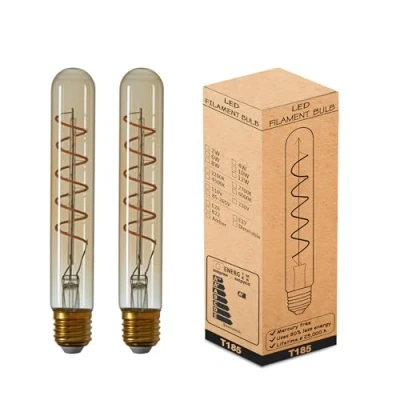2 Pack T185 Long Tubular LED Bulb Edison Retro Vintage Decorative Tube Light Bulbs E27 4W Non Dimmable Filament Warm White 2700K 450LM