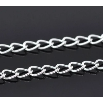 2 Packs of 10 Metres Silver Plated Links Open 5mm x 3mm Curb Chain for Jewellery Crafts, Card Making, Decoration