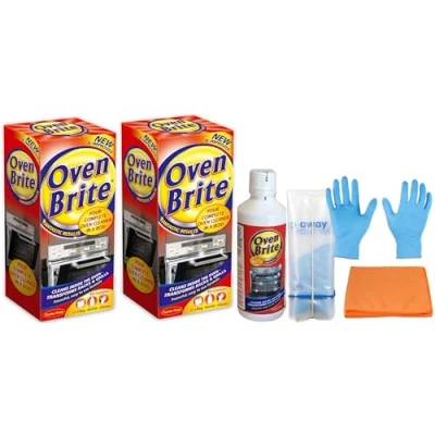 2 Packs of Oven Brite Antibacterial Cleaning kit 2X 500 ml Bottle Rack Bags and Gloves Included Complete with Ultra Absorbent Cloth