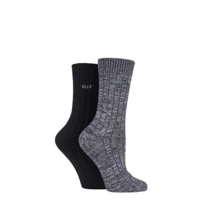 In a twin pack of cotton rich, mixed shade styles, these Women's Elle Chunky Ribbed Boot Socks make a practical, pretty accompaniment to all your ankle boots. The weave is mid-weight, so it’s chunky, but not too thick to be worn with closer fitting boots. They are warm and highly breathable thanks to the high cotton content, and durable too. Elle Chunky Ribbed Boot Socks have comfortable, smooth woven soles and standard toe seams. For an added touch of style, both pairs of socks have the Elle brand logo sewn at the ankle.