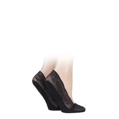 2 Pair Black Lace Shoe Liner Socks with Grip Ladies 4 8 Elle