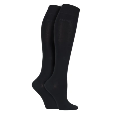 2 Pair Black Plain Bamboo Knee Highs Ladies 4 8 Elle