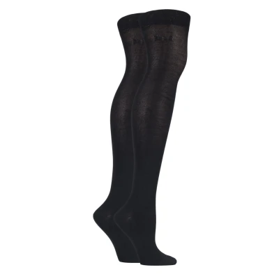 2 Pair Black Plain Bamboo Over The Knee Socks Ladies 4 8 Elle