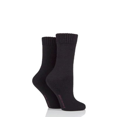 2 Pair Black Wool Mix Plain Boot Socks Ladies 4 8 SOCKSHOP