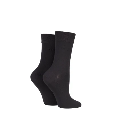 2 Pair Cocoa Plain Bamboo Fibre Socks Ladies 4 8 Elle