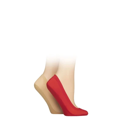 2 Pair Red / Natural Smooth Nylon Shoe Liners Ladies 4 8 Elle
