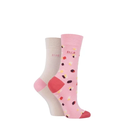 In a value twin pack containing an eye-catching, ornately patterned pair and a plain-legged pair with contrast toes and heels, these soft, pretty Elle Bamboo Patterned and Plain Socks are made to be easy-going and highly wearable.Manufactured in an ankle length, Elle’s 80% bamboo rich socks are silky, smooth and natural. They’re especially kind to sensitive skins and always fresh, thanks to being thermally balanced, along with their antibacterial and anti-allergenic properties. These socks are also super-comfortable, with non-constricting comfort cuffs and Smooth Linked Toes for smooth seams.