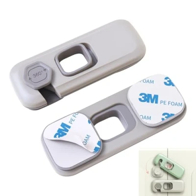 đ¶ăBaby Safety First DesignăThese child proof refrigerator locks effectively block toddlers from opening fridges, ovens, cabinets, or doorsâpreventing finger pinches, access to dangerous objects (like sharp tools or cleaning supplies), or food/spill messes. Adults can easily open them with a simple press-and-slide motion, but little hands lack the strength and dexterity to unlock them. It lets your baby play freely in the kitchen or living room while you stay worry-free, making it a must-have for families with kids aged 1-5.â đ ïžăNo-Tool Adhesive InstallationăEach lock comes with strong sticky self-adhesive padsâno drilling, screws, or tools needed! Just clean the surface, peel the backing, and stick the lock on. For best adhesion, wait 12 hours before using (ensures it stays firmly attached even with repeated toddler tugs). Unlike permanent locks that damage furniture, these can be removed without leaving scratches or residue, making them great for renters or anyone who doesnât want to alter their fridge/ cabinets.â đȘăDurable Non-Toxic ABS MaterialăMade of high-quality ABS plastic, these locks are tough enough to resist toddler bites, pulls, or impactsâno easy cracking or breaking. Theyâre also nontoxic and odorless, so you donât have to worry about harmful chemicals near your baby or food. The durable material ensures the locks last for years, even with daily use, making them a cost-effective solution for long-term child safety.â đăMulti-Scene Versatile UseăMore than just fridge locksâthey work for ovens (prevents burns), cabinets (blocks access to meds/cleaners), doors (stops kids from wandering), and even RV refrigerators (great for family road trips). The compact design fits most flat surfaces, so you can use them in the kitchen, bathroom, or bedroom. One 2-pack set covers multiple high-risk areas, eliminating the need to buy separate locks for different furniture.â đšăGray & Green Dual-Color OptionăUnlike plain white locks that stick out, these come in a neutral gray and fresh greenâtwo colors that blend seamlessly with most home decor (wooden cabinets, stainless steel fridges, or white walls). The subtle hues add a touch of style without being eye-catching, keeping your space looking neat while still providing top-tier safety. You can even mix and match colors to match different rooms!â