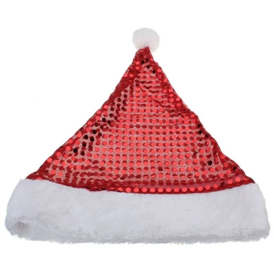 2 Pcs Deluxe Santa Father Christmas Hat with Sequin Fancy Dress Costume accessory