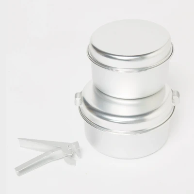 Compact - easy to pack and store Made from aluminium - lightweight, durable and easy to clean Carry strap Pan gripper Pot lids double up as pans 1.4L pot 1L pot 5.5” pan 7” pan Pack size: 17.5cm x 17.5cm x 10cm Colour: silver Weight: 263 g