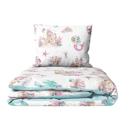 2 Piece Baby Children Quilt Duvet & Pillow Set 120x90 cm to fit Toddler Cot Bed (Mermaids)