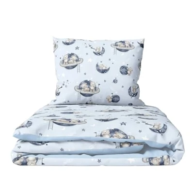 2 Piece Baby Children Quilt Duvet & Pillow Set 80x70 cm to fit Crib or Pram (Bears in space)