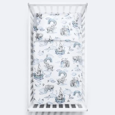 2 Piece Baby Kids Bedding Set 120x90 cm Duvet Cover & Pillowcase for Toddler Cot (Blue Elephants)