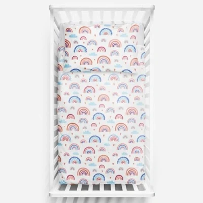 2 Piece Baby Kids Bedding Set 120x90 cm Duvet Cover & Pillowcase for Toddler Cot (Rainbow)
