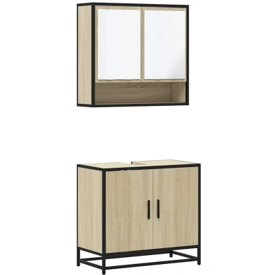 2 Piece Bathroom Furniture Set Sonoma Oak Engineered Wood Vidaxl