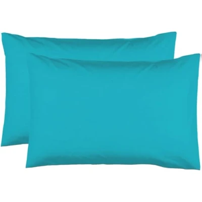 2 Pillowcases 50 x 70 cm Turquoise Blue 100% Cotton 57 Thread Count