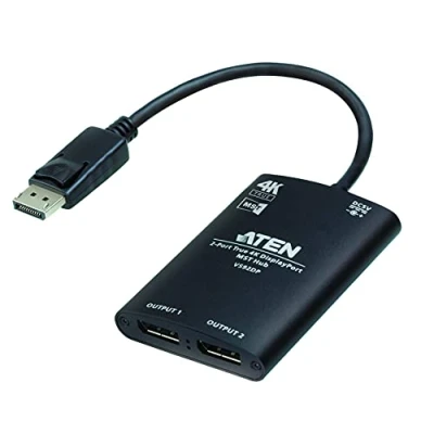 Distributes one True 4K source to two DisplayPort displays at the same time Allows Multi-Stream Transport (MST) Mode for multitasking DisplayPort 1.2; HDCP 1.3 compliant High quality and durable aluminium enclosure Supports 4K resolution for dual output up to 3840 x 2160@30Hz (4:4:4) Provides Dolby True HD and DTS-HD Master 7.1 Audio channel Bus-powered