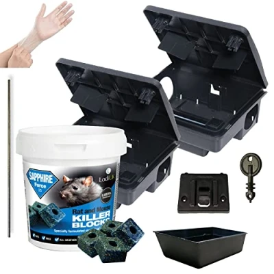 2 Professional Rat Bait Station Boxes & 300g Single Feed Poison Blocks Advanced Formula Kit All weather