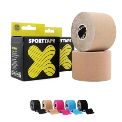 Stays on for 5+ days - Our original SPORTTAPE K Muscle Tape formula bonds to clean, dry skin for waterproof adhesion through swimming, showering & intense sports. Used by phyios, athletes and sports teams worldwide. Apply 30 mins before activity, directly to skin, for best results. Multi-Area Support and Relief - Each 5cm x 5m sports tape roll provides 20+ applications for knee, shoulder, ankle, back & shin splint support. Made from an organic cotton & nylon blend to provide a perfect combination of flexibility, recoil, comfort & support for any area of the body. Hypoallergenic & Latex Free - Kinetic Tape made from medical-grade fabric and glue contains no typical allergens, meaning that an allergic reaction is very unlikely. However, we would always recommend a test patch if using tape for the first time. Easy to Apply - Kinesiology Tape is designed to reduce the pressure on pain receptors in the skin; providing support and strapping to fatigued or injured muscle. The aim is to try and support the taped area, without being restrictive - meaning you can keep moving. Trusted by Athletes, Physios & Medical Professionals - Professional quality tape used by functional fitness competitors, marathon runners & elite level sports players worldwide. Suitable for all and easy to self-apply.