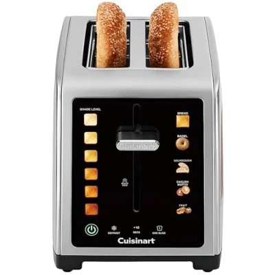 EFFORTLESS CONTROL WITH COLOUR TOUCHSCREEN Say goodbye to guesswork. The vibrant colour touchscreen makes selecting your perfect toast simple and intuitive. Just tap and go for a modern, streamlined experience. ROOM FOR MORE – 40% LARGER XL SLOTS FOR BIGGER BITES From thick-cut sourdough to fluffy bagels, the extra-large slots handle it all. Perfect for artisan loaves, English muffins, and fruit bread without squeezing or tearing. PRECISION BROWNING YOUR WAY Choose from 6 shade settings for the ideal level of crispness - light, golden, or deep brown. Every slice, exactly how you like it. SMART PRESETS FOR EVERY CRAVING Five dedicated presets- Bread, Bagel, Sourdough, English Muffin and Fruit bread - ensure perfect results for every texture and thickness, and the High-Lift Quickview lever lets you sneak a peek mid-toast, FUNCTIONS THAT FIT YOUR LIFE Defrost function for frozen favourites, add an extra 15 seconds for that perfect golden finish, or toast a single slice to save energy. SLEEK DESIGN WITH PRACTICAL DETAILS Stainless steel finish in a compact footprint. Convenient front crumb tray slides out for quick cleaning and built-in cord storage keeps your countertop neat and organised., Manufacturer: Cuisinart