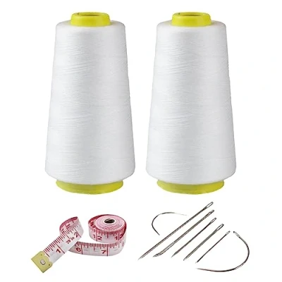 【Size】- Each Spool Sewing Thread Length: 3000 yd / about 2745 meters, 2 Spools White Polyester Sewing Thread total 6000 yards. 【Package Included】- This pack contains 2 Spools All-Purpose Connecting Threads,1 pcs measuring tape, and 7 pcs hand sewing needle. 【Material】- The sewing thread is made of high-quality polyester, 40s/2 on the polyester sewing thread spool. Soft with high strength. Won't become hairy, it is not easy to be fraying or breaking, not discolor or shrink. 【Professional Machine Thread】- Our Spool Sewing Thread is suitable for use on most brands of sewing machines or high-speed sewing machines. It has been crafted using advanced twisting technology and air-splicing technology, resulting in almost no joint in 1 cone and stable quality. This means you no longer need to worry about breaks or interruptions during your sewing work. 【Widely Used】- Spool Sewing Thread can be used for a variety of sewing projects, including quilting, piecing, serger, embroidery, and general stitching. It is perfect for machine sewing, home-based sewing enthusiasts and professional tailors.