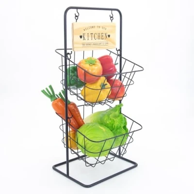 2 Tier Fruit basket Vintage Style Tiered Wire Vegetable Storage Baskets with Removable Free Standing Kitchen Rack Compact Stylish Black