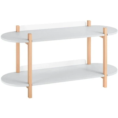 General description This minimalist 2-tier bookshelf and display shelf features a clean look and smooth lines, making it easy to integrate into various interior decorating styles. With two shelves, it provides ample space for books and decorative items, helping to keep your room tidy and organized. The oval tabletop and open shelf design effectively utilize space and adapt to your layout. This versatile piece can be used as a side table, coffee table, or bookshelf, making it suitable for living rooms, waiting rooms, studies, and more. Technical specifications Material: MDF, beech wood Dimensions: W100 x D33 x H52 cm Weight: 10 kg Load capacity: 50 kg Installation Item comes in a flat pack and requires self-assembly Detailed instructions supplied Other information The decorative elements are not included in the delivery 4 felts on the bottom of the legs protect your floor, minimize drag noise, and protect the table legs A thin metal plate in white at the back of each shelf prevents