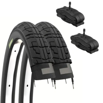✅ 2 Tyres 12 1/2 x 1.75 2 1/4 (47-203) + Inner Tubes with American Valve ✅ Ecovelò Black Tyres | Slick Tyres 12 Inch for City Bike, Child Bike, MTB Bimbo, Mountain Bike ✅ INFLATE TO 40-65 P.S.I. (2.8-4.6 bar) | Ecovelò tyre consists of three basic elements: casing (frame), hoop for stable positioning on the rim, rubber tread (compound). ✅ The Schrader valve inner tubes are made of butyl, a type of synthetic rubber that is very elastic and at the same time airtight. They have extreme air tightness and elasticity characteristics and can be used for a wide range of tyre sizes ✅ For any kind of information or clarification, prior to purchase, or for post-shipment issues (late delivery, defects or posthumous damage, etc.) please contact Seller Support with a message to the seller on Amazon.