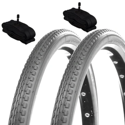 2 tyres 24 x 1 3/8 (37 540) + American valve chambers grey covers wheelchair inches