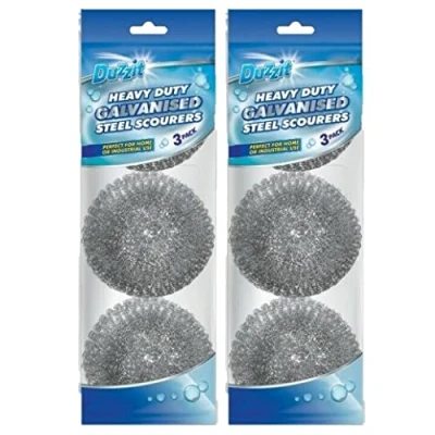 Sold as 2 x 3 Pack Duzzit Heavy Duty Galvanised Steel Scourers Perfect For Household Use Long Lasting Protected Against Rust Sold as 2 x 3 Pack Duzzit Heavy Duty Galvanised Steel Scourers Perfect For Household Use Long Lasting Protected Against Rusty Abrasive Protects Against Rust Tough Acting NOT Suitable For Non-Stick, Enamel Or Soft And Delicate Surfaces