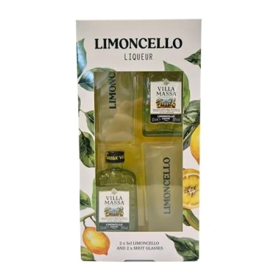 2 x 5cl Villa Massa Limoncello Di Sorento 30% ABV with branded shot glasses.