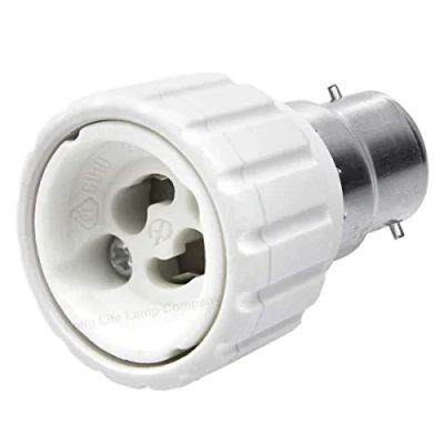 Base B22 to GU10 Twin pack 2 Adaptors Simply Plug in these adapters to convert your Bayonet Cap bulbs to GU10 2 pin fitting Its as easy s fitting a light bulb 240v, Ceramic-based heat dissipation Allows you to use the amazing latest technology GU10 LED and in a BC socket. Dimensions: Ø 34mm, height 53mm, Copper plated head Flame Retardant PBT Suitable for all GU10 bulbs including the all new SMD LED GU10 bulbs that give out a true 50w instant light for only 4.5w energy usage