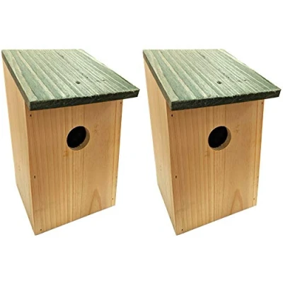 ATTRACTS WILD BIRDS - These wooden bird nesting boxes provide a safe and sheltered space for UK garden birds, including sparrows, blue tits, and more, encouraging them to nest and roost HINGED ROOF FOR EASY CLEANING - Designed with a practical hinged lid, these bird nest houses can be easily opened and securely screwed shut for effortless maintenance and nest monitoring IDEAL ENTRY SIZE FOR GARDEN BIRDS - The 3cm entrance hole is perfectly sized to welcome small wild birds while keeping larger predators out, creating a safe nesting box for breeding birds DURABLE & WEATHER-RESISTANT - Crafted from sturdy, weatherproof wood, these wooden birdhouses withstand outdoor conditions, offering long-lasting protection for nesting birds throughout the seasons EASY TO MOUNT ON TREES & WALLS - Each bird box features a pre-drilled hanging hole, allowing for secure attachment to trees, fences, sheds, or garden walls — ideal for any outdoor space DIMENSIONS - Each bird nesting box measures 21cm (H) x 12cm (W) x 14cm (D), including the roof, providing a comfortable nesting space while fitting neatly into gardens of all sizes