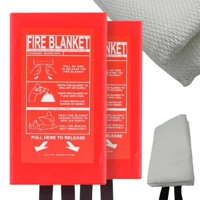 2 X FIRE BLANKET HOME SAFETY 1M X1M QUICK RELEASE PROTECTION KITCHEN OFFICE CASE