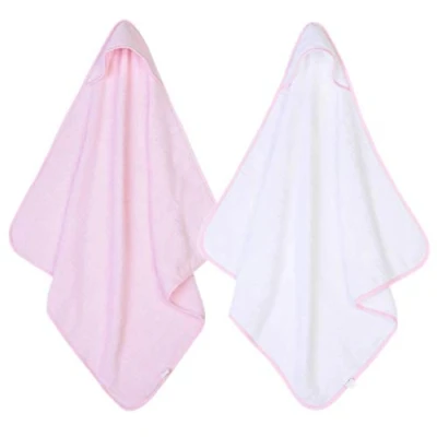 2 x Hooded Baby Towel Soft 100% Cotton Bath Wrap Pack of Two Towels, Pink & White