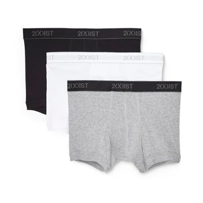 2(X)IST Men's Essential Cotton No Show Trunk 3 Pack, White/Black/Grey Heather, Medium