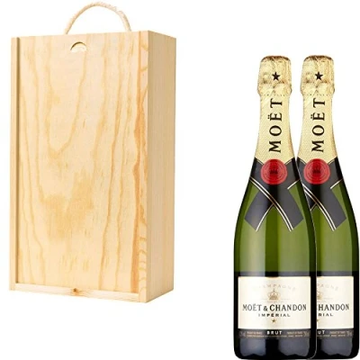 2 x Moët & Chandon Brut NV Champagne in Pine Wood Gift Box With Handcrafted Gifts2Drink Tag