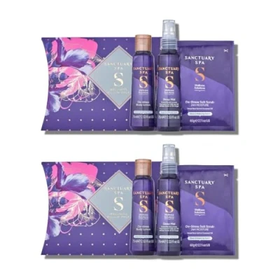 2 x Sanctuary Spa Wellness Pillow Pack Includes Sleep Mist, Body Lotion & Salt Scrub