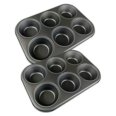 2 x Simpa 6 Cup Muffin Tin Non Stick Teflon Coating Made from Carbon Steel Dishwasher Safe 26 cm 18 3cm
