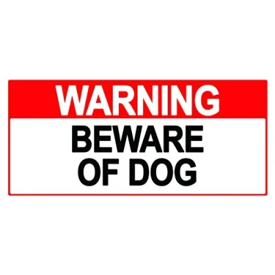 2 x Warning Beware of Dog Sign Sticker Label Removable Self Adhesive Waterproof Durable Vinyl 225mm 106mm