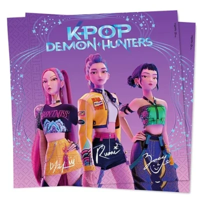 [20 NAPKS] Experience a magical adventure with TV's most famous demon hunters: 20 x Demon Hunters K-pop Napkins 13" x 13". [OCCASION] Ideal for setting the table during the party. Practical and disposable, lightweight, easy to dispose of. [PLEASE NOTE] Colors may differ according to different lighting conditions at the time of shooting. For disposal please refer to local regulations.
