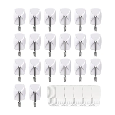 20 Hooks+40 Strips, White, Small Wire Toggle Hooks Value Pack, Organize Damage Free Utility Hooks, Hanging Heavy Duty with Adhesive No Tools Wall for Hanging, Without Nails