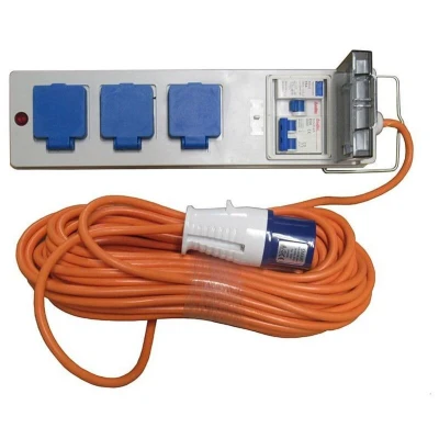General description Our 20 metre mobile mains hook up cable features three UK plug sockets and is designed for use while travelling, camping, or visiting campsites. The high visibility orange cable ensures safety and easy identification. This kit includes a residual current device (RCD) and a miniature circuit breaker (MCB) for enhanced safety and protection. Technical specifications Cable Length: 20 Metre IP Rating: IP44 Approved: BS EN60309 Sockets: 3 Pin UK Plugs Voltage: 200-250V Product Weight: 3.7kg Ceeform plug rated at 16amp Other information The distribution box features a sealed transparent window with a kill switch. No assembly is required; simply plug into any CEE female socket for immediate use. Includes 2 tent pole clips for convenient storage and a metal hook for hanging. MCB switches off the electrical circuit during abnormal conditions, such as overloads. RCD instantly breaks the electric circuit to prevent serious harm from electric shocks.