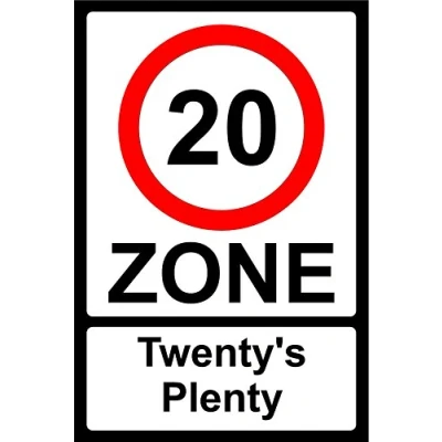 20 mph ZONE Twentys Plenty sign 3mm Aluminium sign 300mm x 200mm Digitally printed and laminated for extra durability 10mm Radius rounded corners, no sharp edges