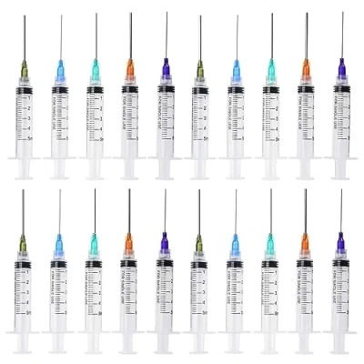 【Package Included】- Package included: 20pcs 5ml luer lock plastic syringes; 14/15/18/21/22G 1.5" Blunt Tip Needles 1pcs of each size. All pack in a package. 【Feature】- Luer lock connection, the luer lock is a connector can prevent the needle falls off from the syringes. Syringe calibrations are large and easy to read, easy see through for accuracy. 【Application】- For measuring and dispensing fluids/chemicals, lab use and experiments. A useful sets for Ink Filling, Oil or Glue Applicator. 【Widely Used】- Widely Used for wood adhesive, glue injector, essential oil dispenser, grain alcohol, science lab measuring, hobby crafts, paint, precision applications of glues, ink refill, perfume measure and injection, lubricants, sealants etc. 【Warm Note】- Non-Sterile blunt tip needles is not for injection, industrial use only.