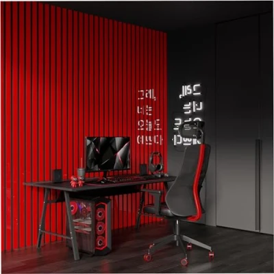 20 Pack — Acoustic Slat Wall Stripes Strip Width 5cm Decoration Decorative Wood(HDF) Panels for Home Theatre, TV Wall, Podcasts Color: (Red gloss plastic, LAMELA 5)